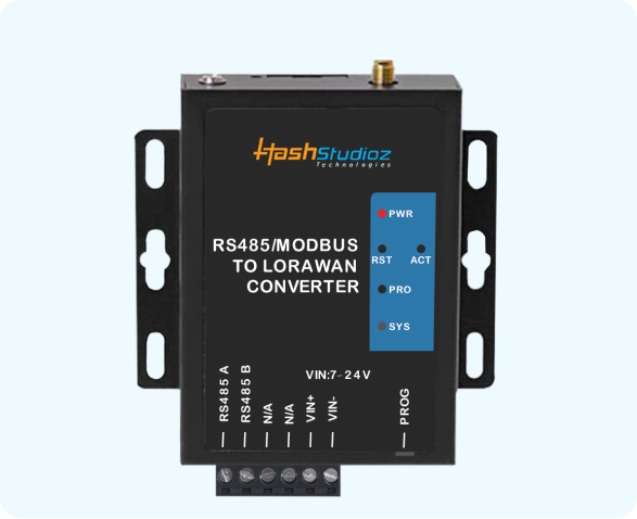 The HashStudioz RS485-LoRaWAN Converter enables legacy RS485 Modbus devices to communicate wirelessly over LoRaWAN networks. Designed for industrial IoT deployments, it offers long-range communication, low power consumption, and robust signal integrity—perfect for remote monitoring and automation use cases.